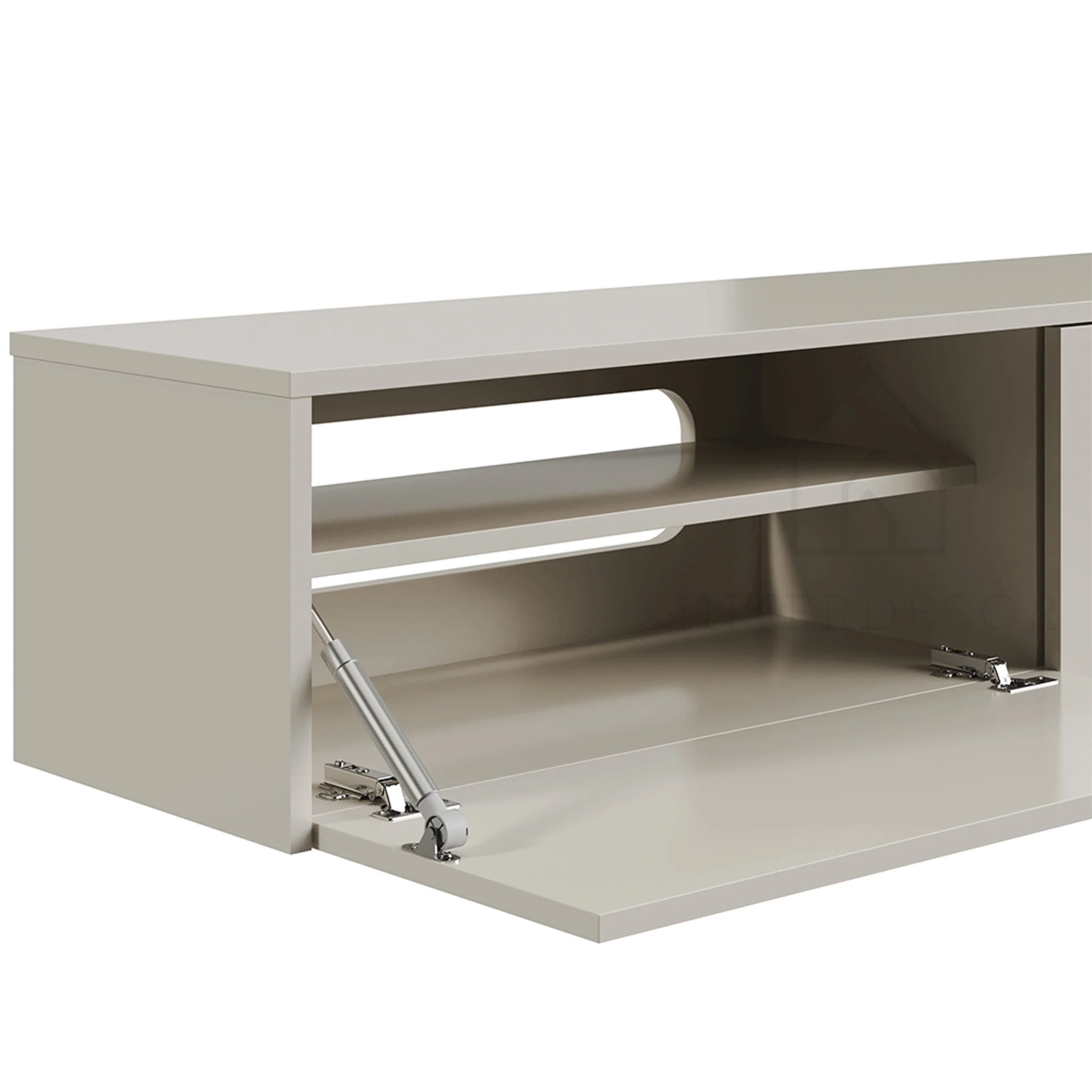 - Ruime opbergruimte: Verschillende vakken bieden voldoende ruimte voor al je multimedia-apparatuur, zoals gameconsoles, dvd-spelers en afstandsbedieningen.