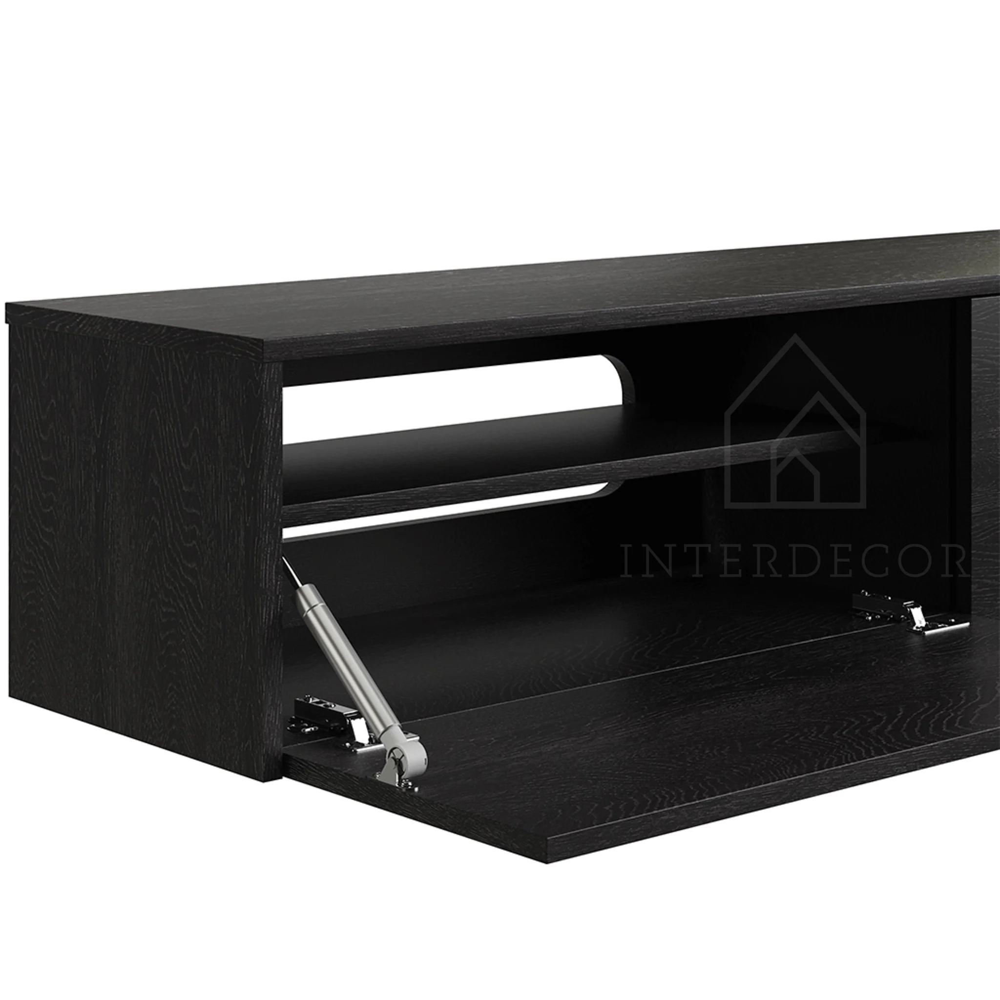 - Ruime opbergruimte: Verschillende vakken bieden voldoende ruimte voor al je multimedia-apparatuur, zoals gameconsoles, dvd-spelers en afstandsbedieningen.